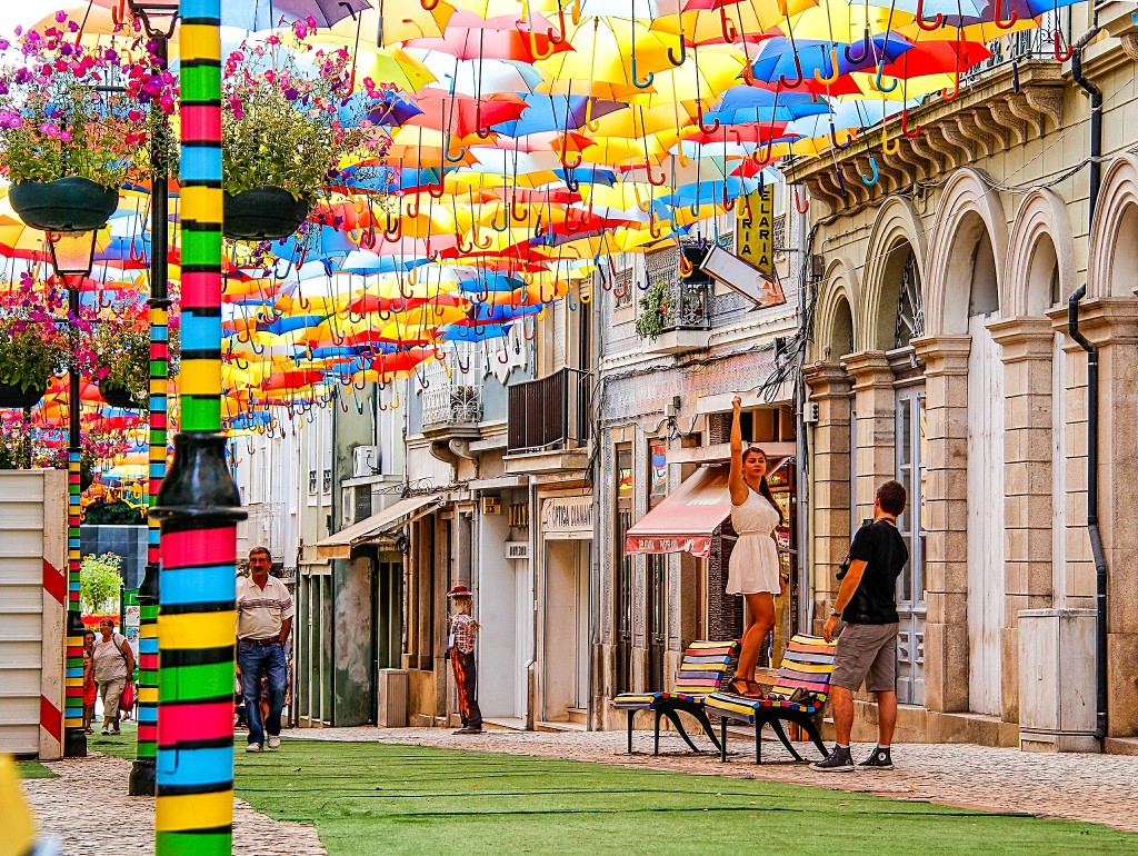 Águeda, localizada no Centro de Portugal, ficou famosa em 2012 pelos seus guarda-chuvas coloridos suspensos. De 1 de julho a 30 de setembro, o Umbrella Sky Project, criado pela agência Sexta Feira, enche as ruas da cidade com guarda-chuvas coloridos e arte urbana. No inverno, a cidade também brilha com guarda-chuvas de Natal.