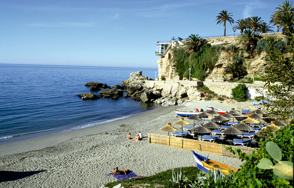 Esta pequena praia de areia e cascalho escuro está localizada no centro de Nerja, na província de Málaga, ao lado da varanda da Europa, um mirante com vistas panorâmicas sobre o famoso mar por toda a parte.