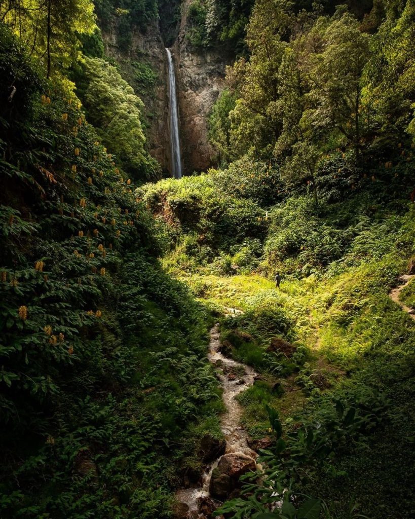 Para chegar aqui, tem de seguir um caminho pedestre, já que os caminhos são sinuosos e agrestes. A queda de água termina numa lagoa com margens de areia que é o local perfeito para descansar antes de fazer o caminho de volta.