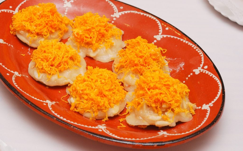Esta tentadora surpresa é apresentada num papel de prata colorido, e é confecionada com fios de ovos e ovos moles, aos quais se pode acrescentar um pouco de amêndoa ralada. São feitas pequenas bolas com os fios de ovos e abre-se pequena cavidade para colocar uma porção de ovos moles.