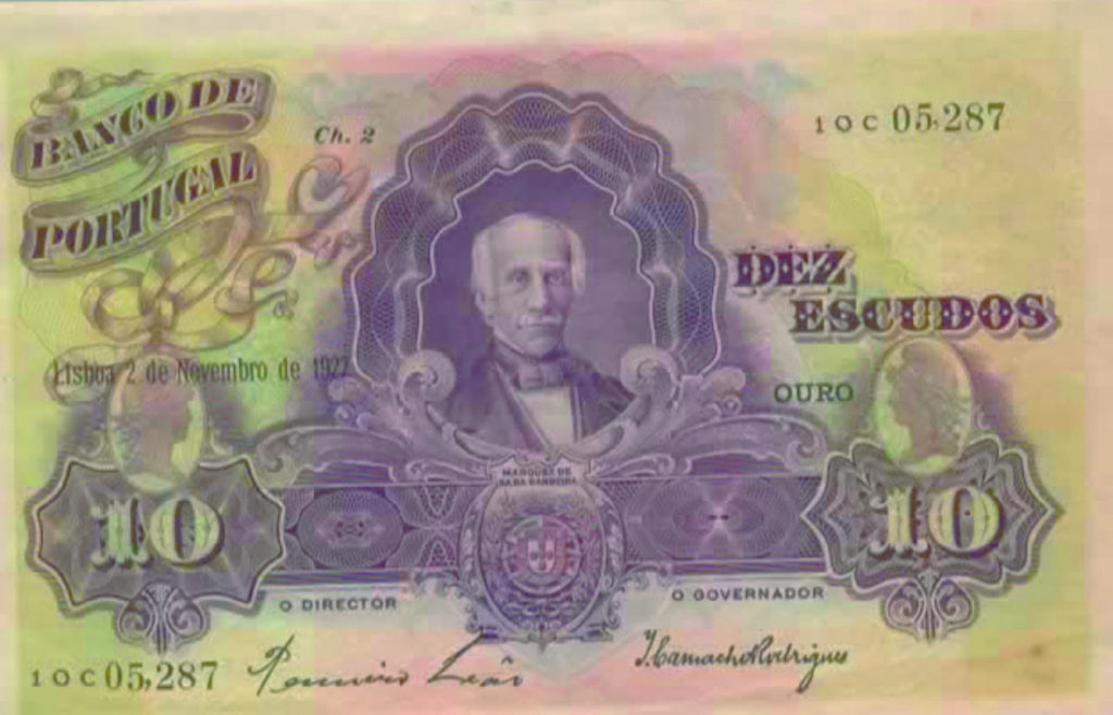 (Atenção: não existem imagens da nota de 10 escudos de 1928. A nota presente na imagem é de 1927 e é igual à de 1928).