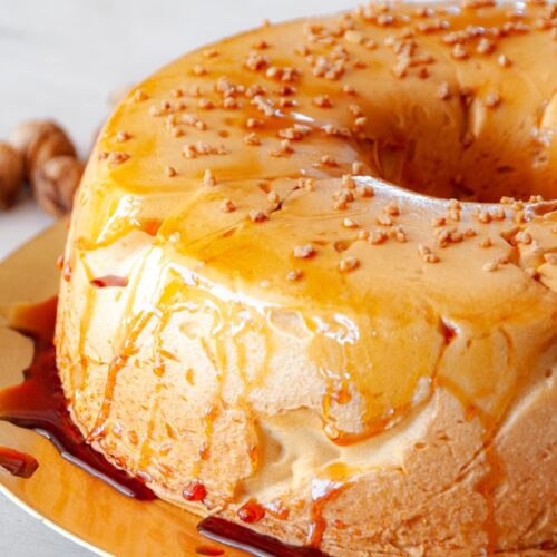 - Espalhe bem o caramelo pela forma e reserve algum numa taça à parte.