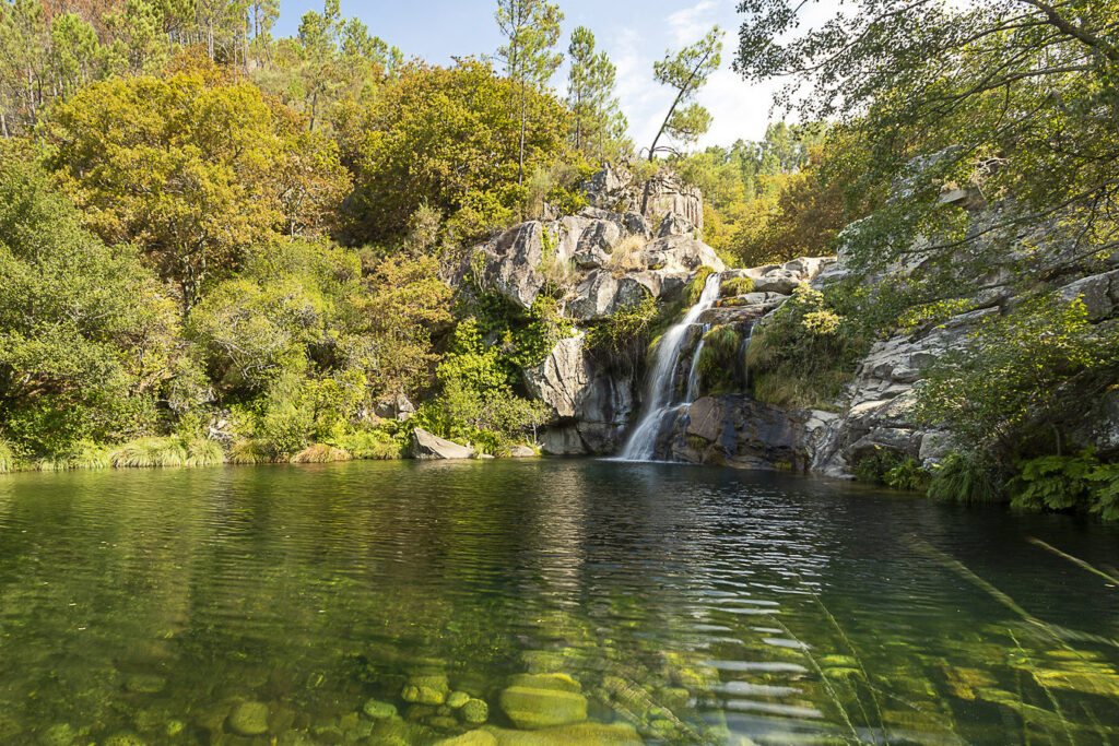 Pode não ter a grandiosidade de outras cascatas desta lista, mas esta cascata deslumbra sobretudo pela sua envolvência, pela sua lagoa de águas cristalinas e pelo caminho que leva até ela. Este caminho é feito através dos passadiços do Penedo Furado, que têm 1.4 km de ida e volta e que valem cada metro do percurso.