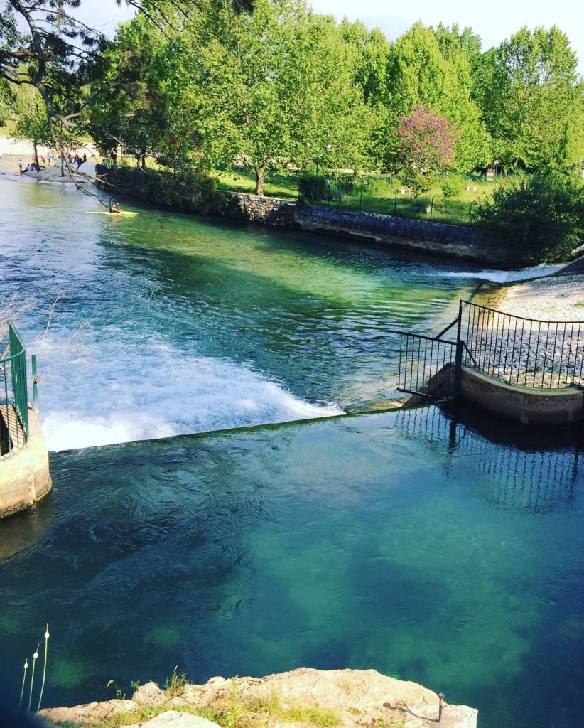 Este local deve o seu nome à nascente do rio Alviela, que surge à superfície uns metros mais acima. O local é muito frequentado pelas famílias, já que os mais novos conseguem aqui ter pé e ver o fundo.
