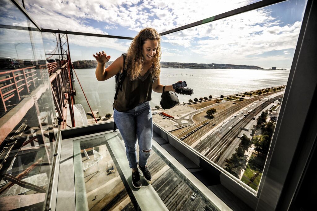 Este é um miradouro recente, e convida a uma perspetiva invulgar sobre a cidade, a partir da ponte 25 de abril. Para além da vista única, em que parece que levitar sobre Alcântara e o Tejo, também aqui se conta a história da ponte e aceder a espaços inacessíveis ao público. A entrada é paga. É um dos mais radicais miradouros de Lisboa.