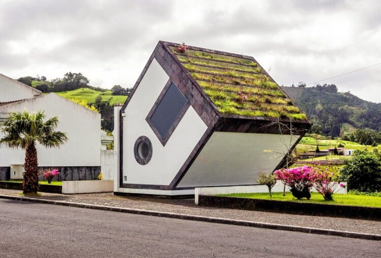 Um edifício utilitário pode também chamar a atenção. E esta casa é a prova disso. Na Ilha de São Miguel, nos Açores, este posto de transformação da Empresa de Eletricidade dos Açores atrai visitantes e turistas, que procuram ver com os seus próprios olhos esta casa que está, literalmente, de pernas para o ar.