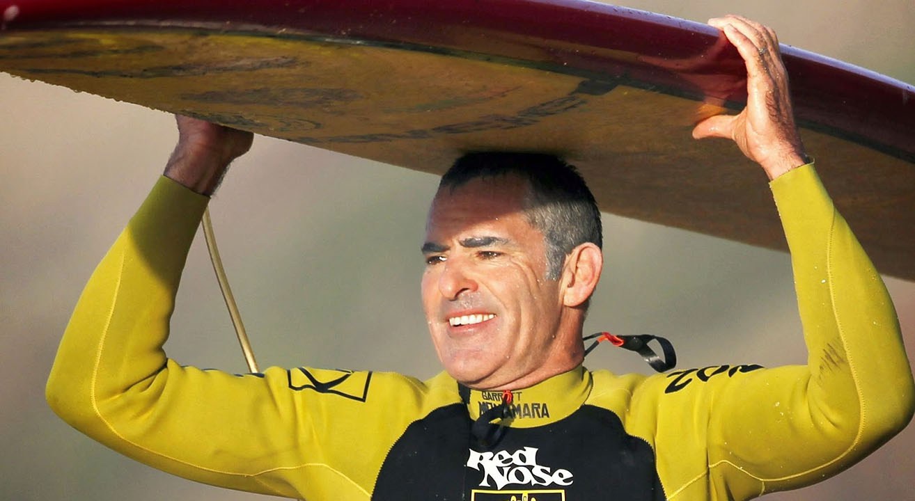 Garrett McNamara é um surfista americano que ficou famoso por surfar as ondas gigantes da Nazaré. Em 2011, bateu o recorde mundial ao surfar uma onda com cerca de 24 metros (equivalente a um prédio de oito andares). Desde então tornou-se uma celebridade em Portugal e no mundo do surf.