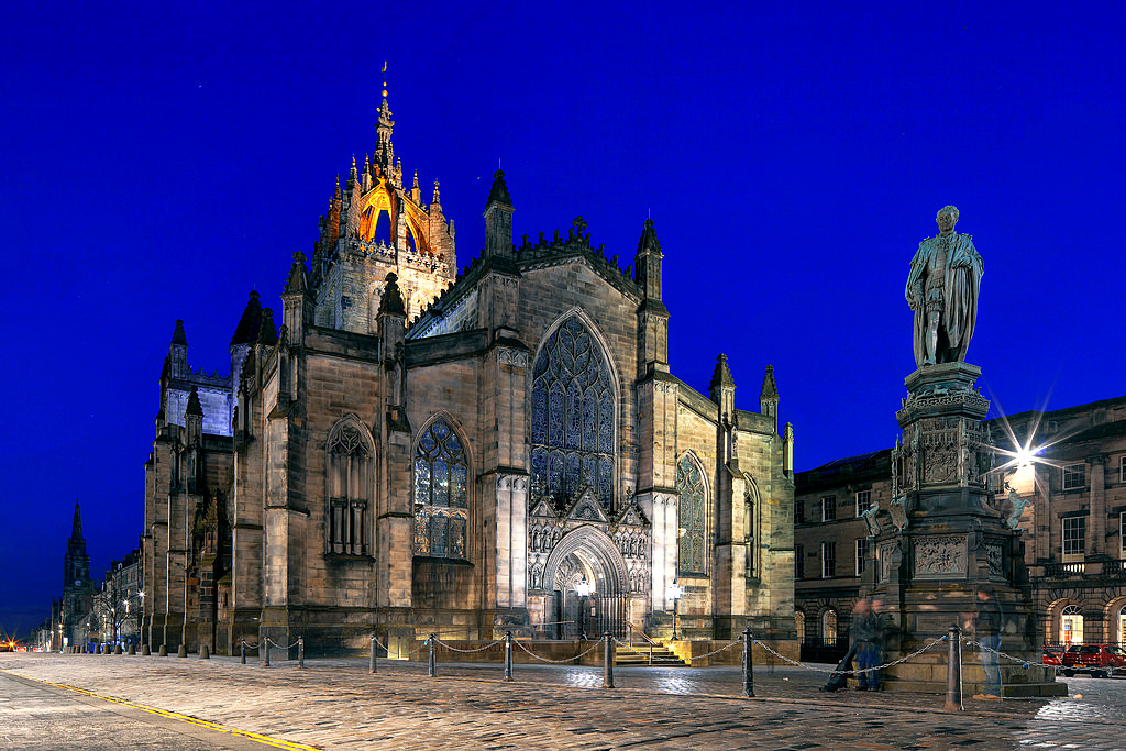 Situada na Royal Mile, a Catedral de St. Giles tem uma história que remonta ao século IX. Conhecida pelo seu estilo gótico, vitrais deslumbrantes e a Capela do Cardo, a catedral é um local cheio de história e beleza. A estátua de John Knox, líder da Reforma escocesa, também está presente.