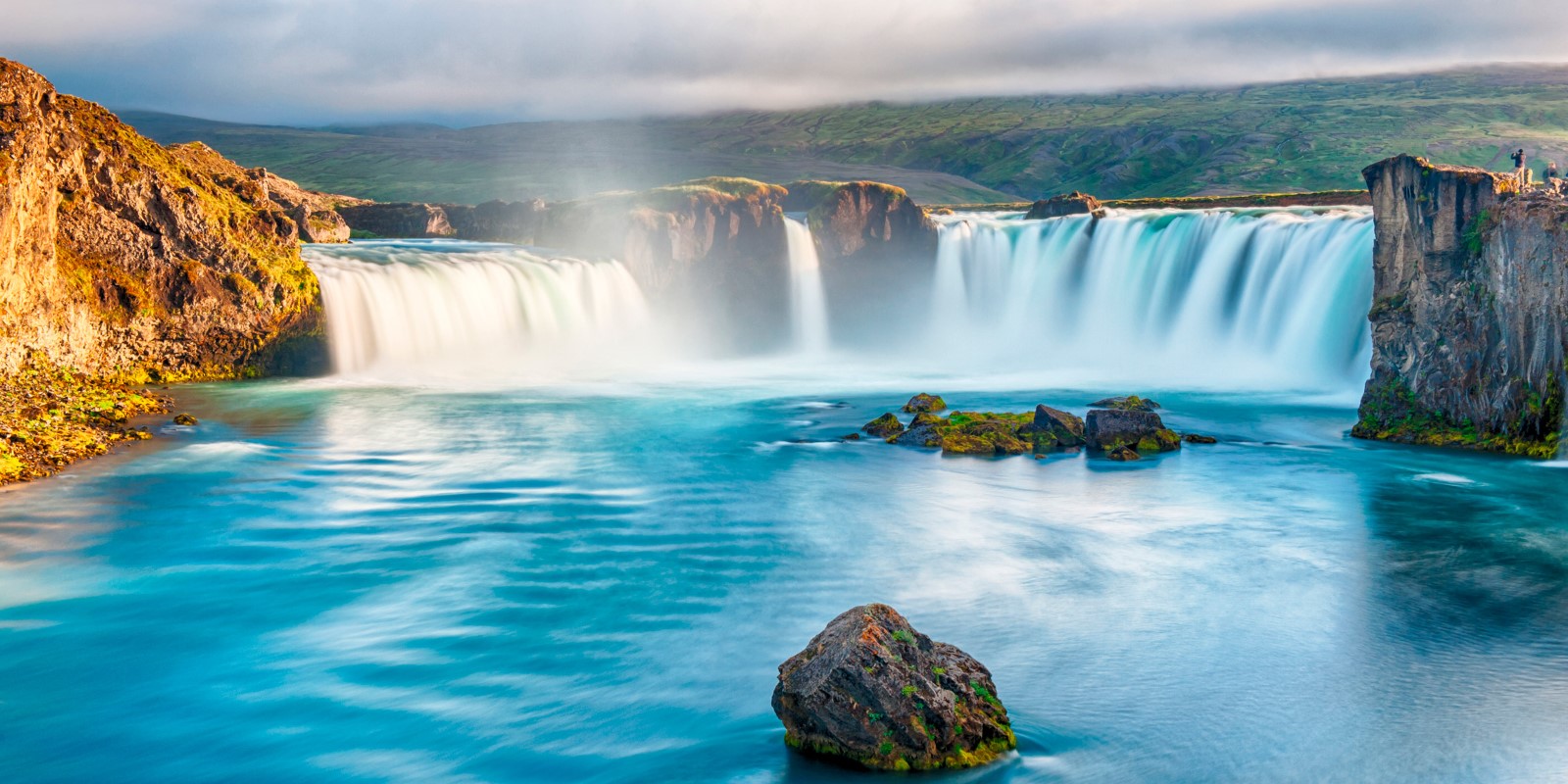 Godafoss é uma das cascatas mais famosas e bonitas da Islândia. O seu nome significa “cascata dos deuses” e está relacionado com um episódio histórico ocorrido no ano 1000, quando o líder do parlamento islandês, Þorgeir Ljósvetningagoði, decidiu converter o país ao cristianismo e atirou as suas estátuas pagãs para a cascata.