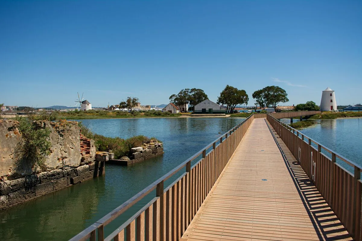 - Passadiço dos Moinhos: é o percurso que vai desde a praia da Alburrica até ao complexo dos moinhos do Gigante, do Nascente e do Poente, que são exemplos da arquitetura tradicional portuguesa e da importância da moagem no passado. Neste passadiço, pode aprender mais sobre o funcionamento dos moinhos e sobre as espécies vegetais que os rodeiam.