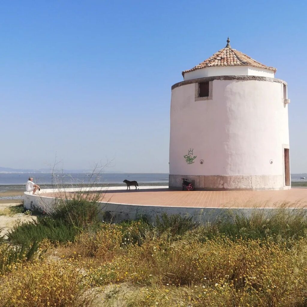 Situa-se em Alcochete, a 45 minutos de Lisboa, e é conhecida pelos seus três moinhos de vento, bem como pelo seu extenso areal. Aqui, o Tejo tem águas pouco profundas e tranquilas, perfeitas para um dia de banhos. Esta praia é também muito frequentada por praticantes de desportos como o kitesurf e o paddlesurf, e é frequente ver-se lançamentos de papagaios de papel.