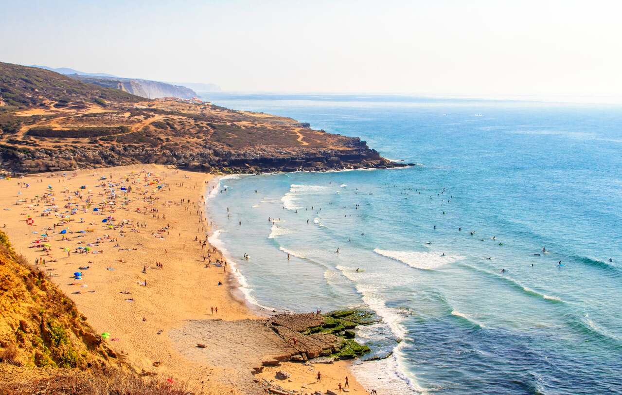 Situada na zona de Sintra, a cerca de 40 km do centro da capital, esta praia é um exemplo de beleza natural, que combina um areal dourado com um mar azul e verde, enquadrados por imponentes formações rochosas.