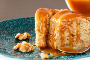 O bolo fica húmido quando é regado com o creme de ovos, o que o torna também muito mais saboroso (a combinação com as nozes é fantástica). Pode também torná-lo mais fofinho acrescentando um pouco de fermento em pó e/ou farinha). Aprenda a fazer um delicioso bolo de noz húmido.