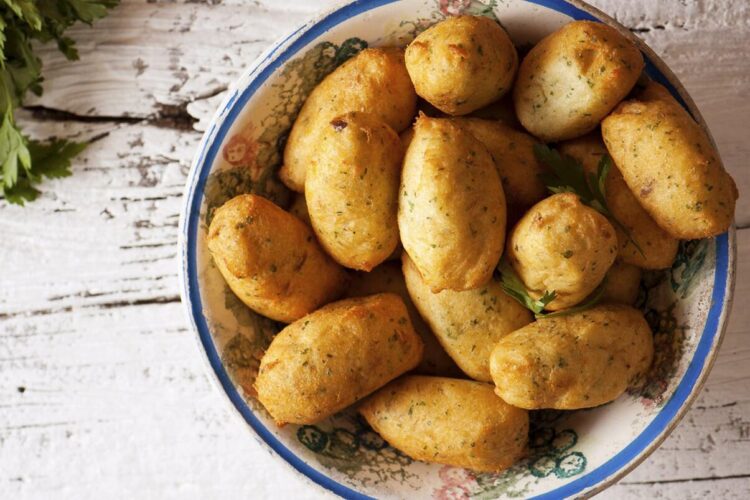 Os bolinhos de bacalhau, também conhecidos como pastéis de bacalhau, são outro petisco típico que não pode faltar numa mesa portuguesa. Feitos com bacalhau, batata, ovos e salsa, são fritos até ficarem dourados e crocantes.