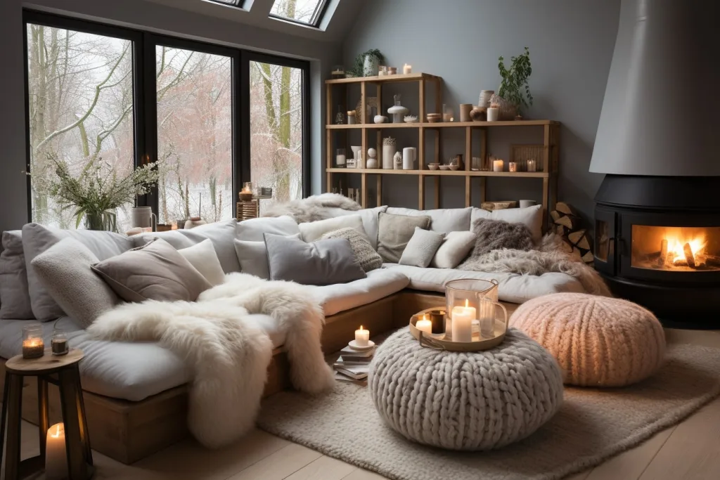 Estar junto de uma fonte de calor sabe bem durante o tempo frio, mas temos a certeza de que vai saber ainda melhor se estiver enrolado numa manta confortável, que o vai aquecer ainda mais e ajudará a tornar toda a decoração mais visualmente apelativa nesta estação do ano.