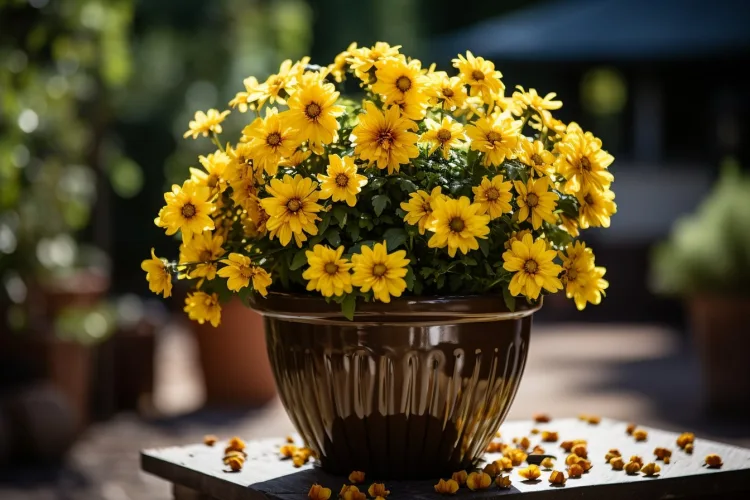 Com pétalas douradas e centro escuro, esta flor simples é surpreendentemente resistente. Aguenta bem variações de temperatura e requer poucos cuidados.