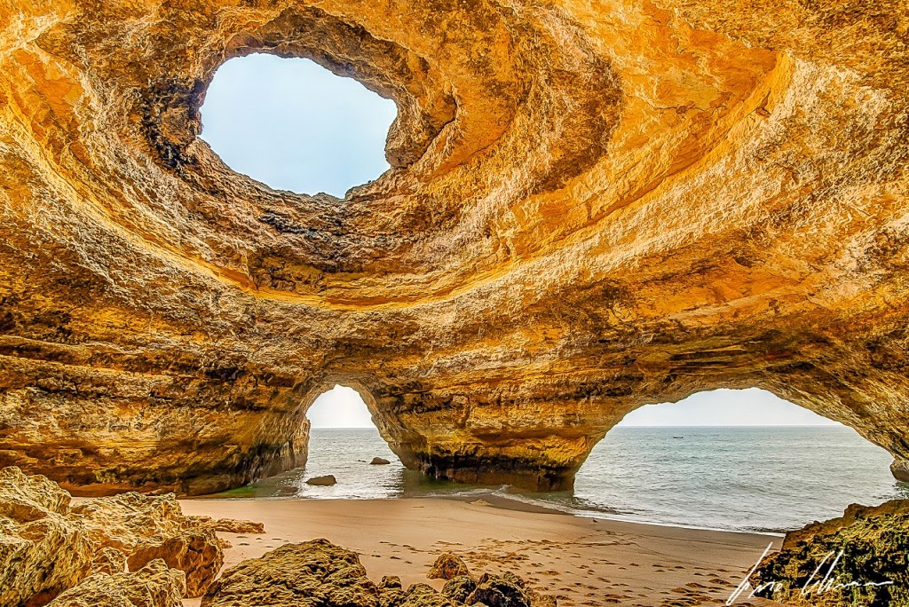 Esta formação geológica incrível fica me Benagil, concelho de Lagoa (algarve) e é acessível apenas por mar. Trata-se de uma impressionante gruta, com um buraco no topo e com uma praia quase paradisíaca no seu interior. É também conhecida como “a Catedral”. A visita apenas pode ser feita por mar, de barco.