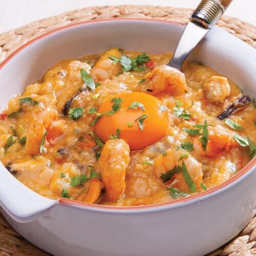 - Se for necessário, junte mais um pouco de caldo de peixe à sua açorda, para obter a consistência de que gosta.