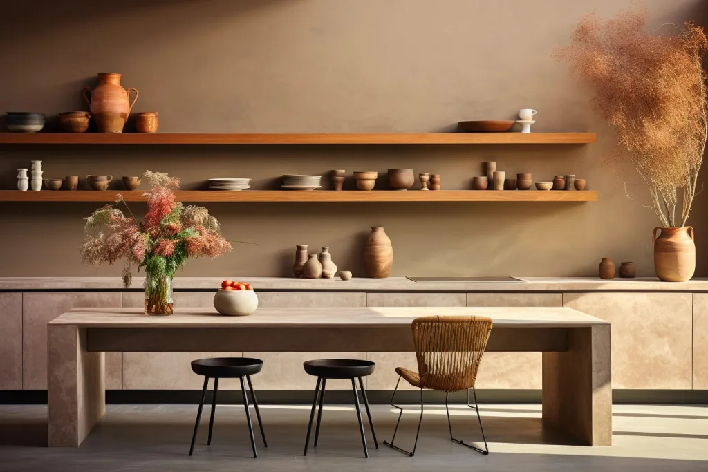 Os tons castanhos — do chocolate ao caramelo — evocam conforto e uma ligação à natureza. São uma boa opção em cozinhas bem iluminadas, sobretudo quando usados em contraste com mobiliário mais claro. A chave está em equilibrar os tons: paredes escuras pedem móveis claros, e vice-versa.