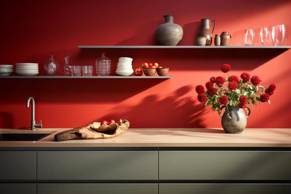 O vermelho é intenso e cheio de personalidade, mas requer algum cuidado. Em excesso, pode tornar o ambiente pesado. É mais indicado para cozinhas amplas e bem iluminadas, e deve ser equilibrado com móveis neutros ou brancos. Uma parede em vermelho pode ser suficiente para criar impacto sem exageros.