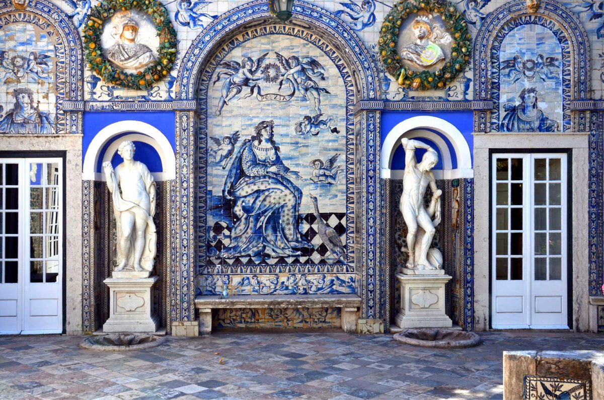 Apesar do espaço ser mais conhecido pelos seus belos jardins e pela arquitetura, tem também uma obra notável em azulejos. Falamos especificamente do Canal dos Azulejos de 1756, que tem paredes decoradas com painéis azuis e brancos. No interior do Palácio, encontra-se também o Corredor das Mangas, uma sala revestida de azulejos policromáticos neoclássicos, que representam as estações do ano, os continentes e algumas cenas da mitologia clássica.