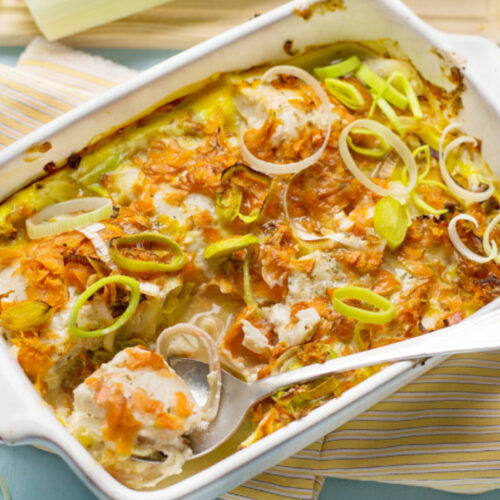O bacalhau desfiado é utilizado em muitas receitas tradicionais e é preparado de diversas formas. A receita que aqui lhe deixamos hoje assenta na combinação clássica de batatas e bacalhau, levados ao forno e regados com um molho que vai fazer toda a diferença. Não há como enganar – este prato agrada a miúdos e graúdos.