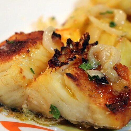 Bacalhau no forno com cebolada