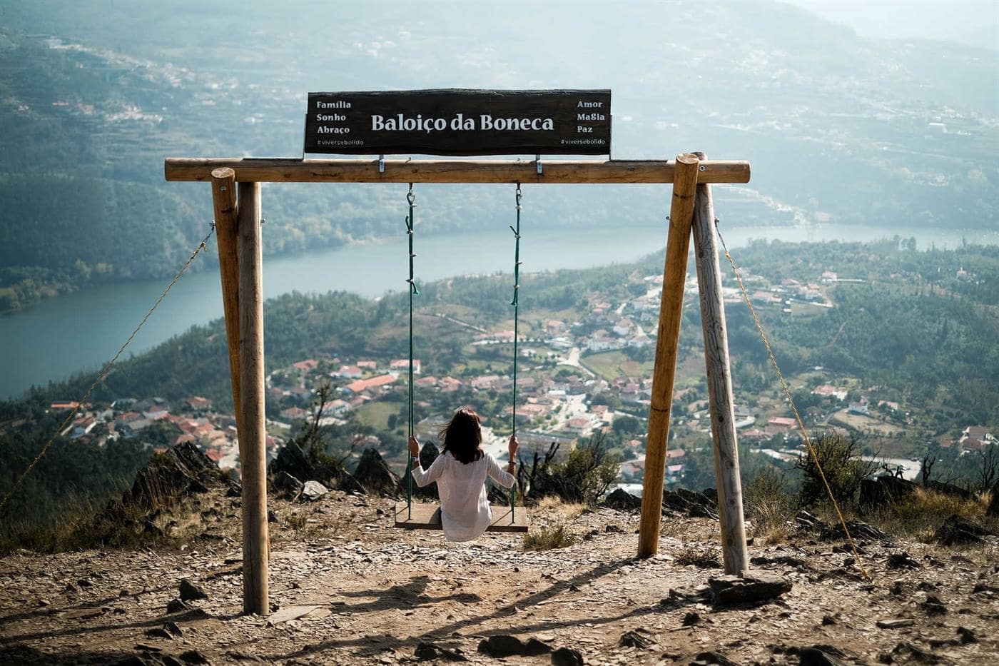 Este incrível Baloiço tinha sido originalmente construído noutro local, mas teve de ser retirado por questões de segurança, relacionadas com o parque eólico. Mas teve uma segunda vida numa nova localização, tendo-se construído também, perto dele, o Miradouro da Boneca, cuja visita se recomenda, já que é o local perfeito para apreciar o Douro, que se estende por baixo, a seus pés.