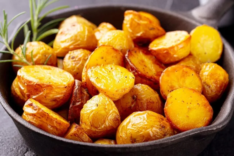 - Regue as batatas com o restante azeite e misture bem para envolvê-las.