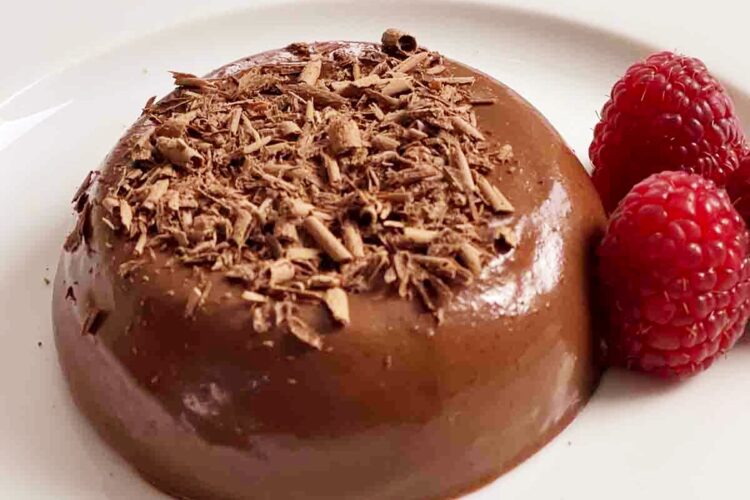 - Desenforme a bavaroise com cuidado e decore com raspas de chocolate antes de servir.