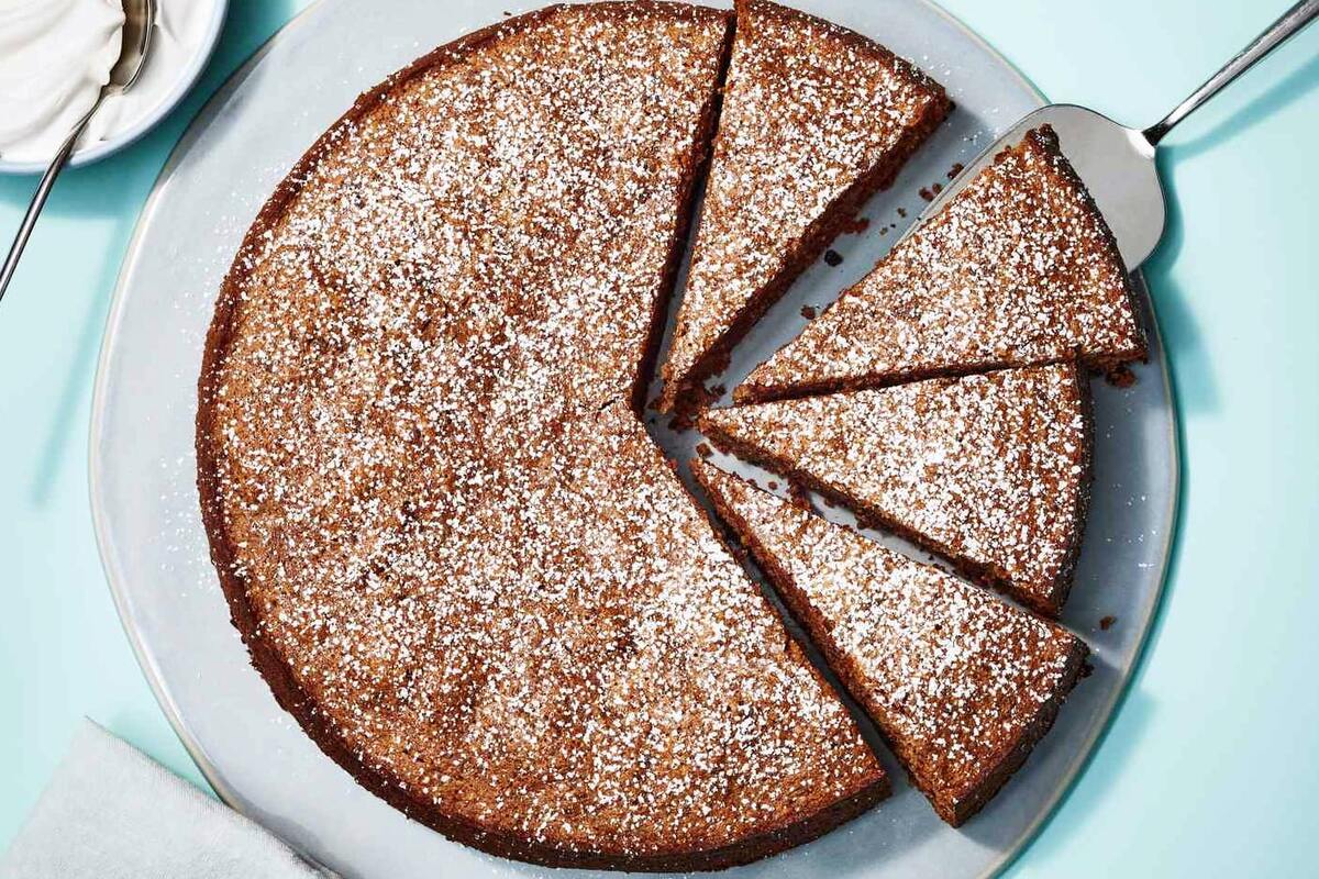 - Se quiser, polvilhe o bolo com açúcar em pó e decore-o com as amêndoas reservadas.