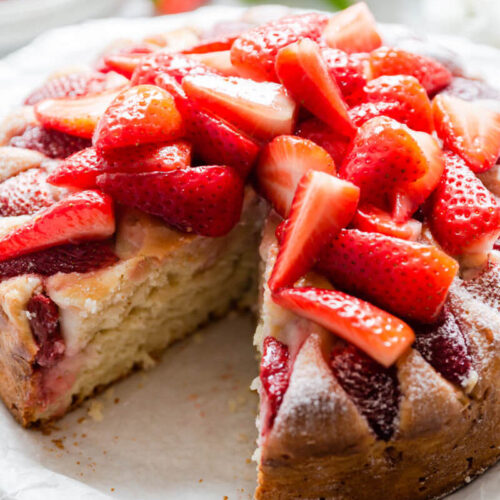Este bolo é tão fácil que nem usa medidas precisas – basta usar o copo de iogurte como copo medidor. Não tem como falhar! Veja a receita e prepare o seu bolo de iogurte de morango.
