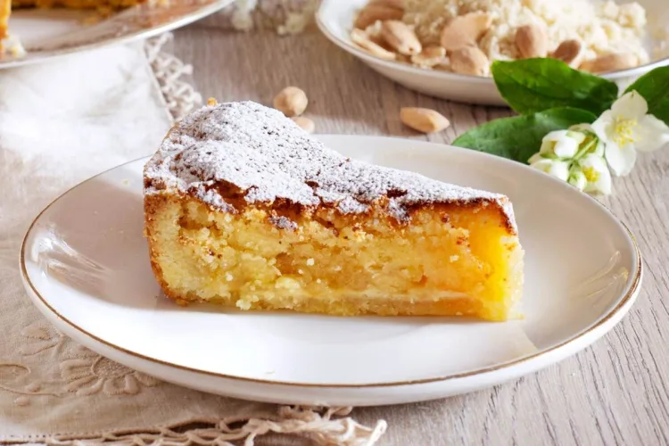 - Decore com amêndoas laminadas e polvilhe com açúcar em pó.