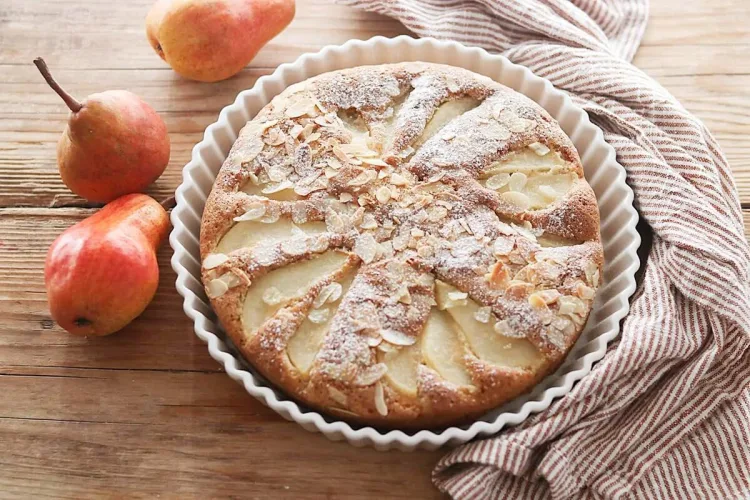 - Incorpore as peras cortadas, envolvendo delicadamente na massa.