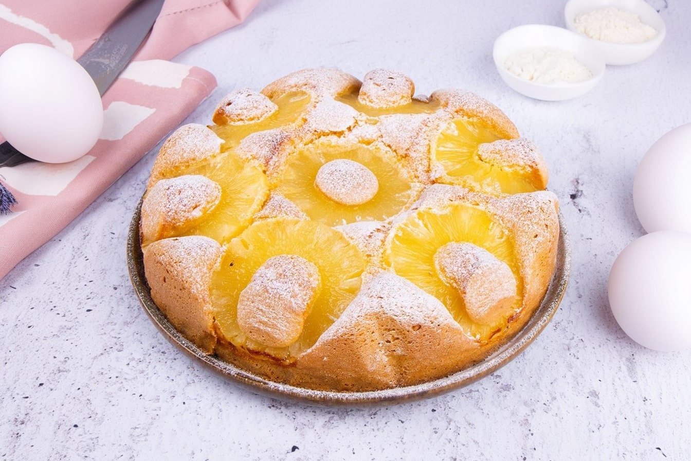 Este bolo de ananás é uma verdadeira delícia, fácil de preparar e com uma textura fofa e húmida. O caramelo e a calda de ananás conferem-lhe um sabor irresistível, sendo perfeito para qualquer ocasião. Se quiser dar-lhe um toque extra, pode decorar com cerejas ou juntar pedacinhos de ananás à massa.