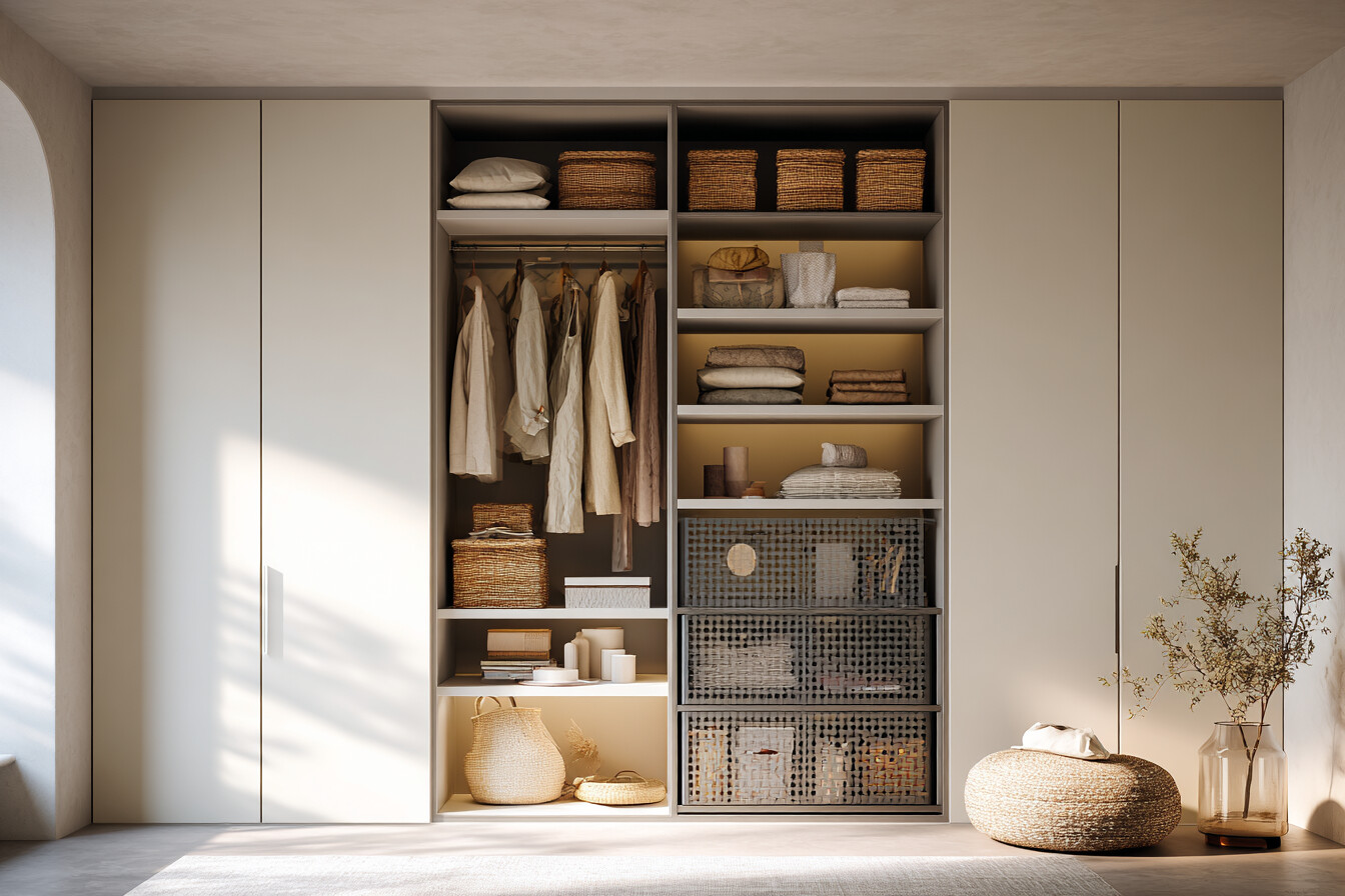 Um reforço simples passa por usar absorventes de humidade próprios ou soluções caseiras, como recipientes com sal grosso, colocados no fundo do armário.