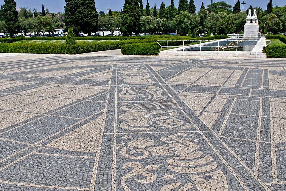 Junto ao padrão dos Descobrimentos, encontra um mosaico onde se vê um mapa do mundo que ilustra as rotas dos navegadores portugueses, dentro de uma rosa-dos-ventos. O desenho encontra-se circundado com o desenho “Mar Largo”, semelhante ao do Rossio.