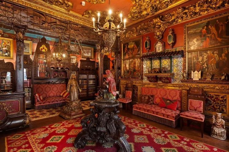 Cada sala parece um cenário de teatro, com tetos decorados, paredes forradas a arte e recantos onde se sente o peso da personalidade do colecionador.