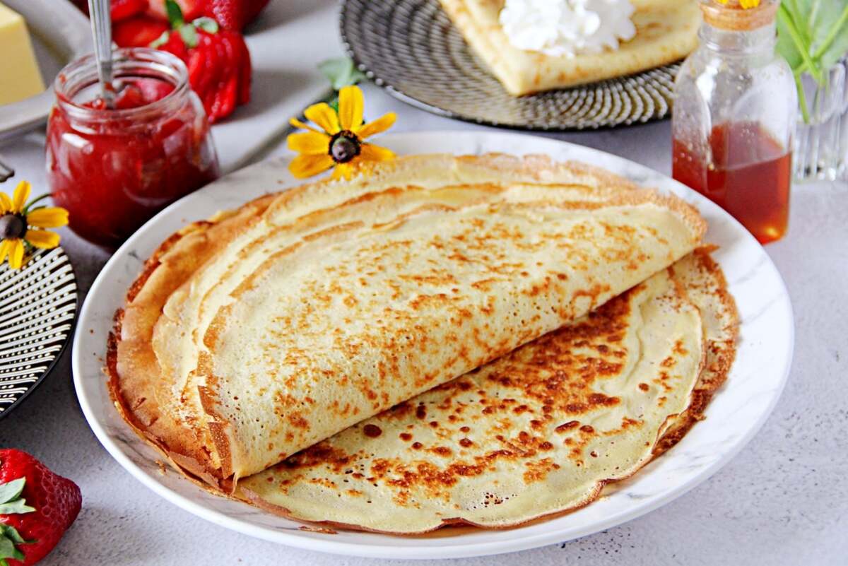 - Repita com o resto da massa, empilhando os crepes num prato.