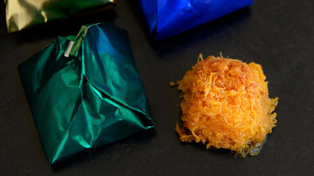 O doce foi servido de três formas ao longo da sua história: em forma de rebuçados, em taças de porcelana ou de vidro, e embrulhadas em papel metalizado, sendo esta última a versão mais conhecida. Hoje em dia, é um dos mais famosos e conceituados doces típicos do Algarve.