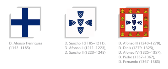 Durante as primeiras lutas pela independência de Portugal, D. Afonso Henriques usava um escudo branco com uma cruz azul, tal como o seu pai, o Conde D. Henrique.