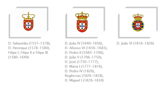 No reinado de D. João VI, uma esfera armilar de ouro em campo azul foi colocada por detrás do escudo, simbolizando o reino do Brasil. Após a sua morte, a esfera armilar foi retirada.