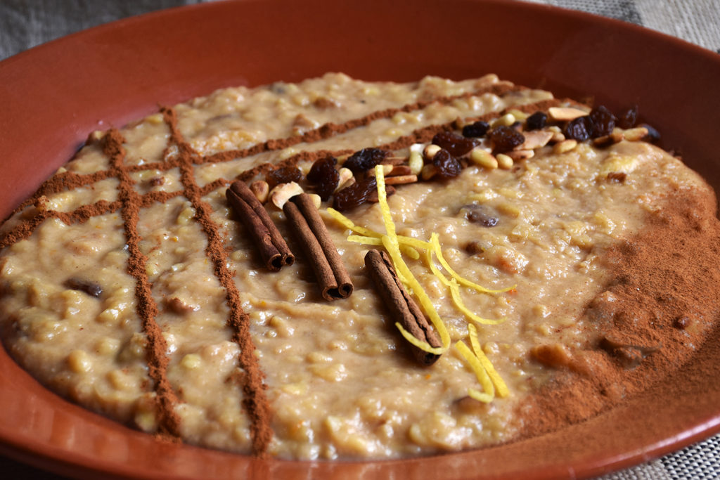 - Acrescente o açúcar, a manteiga, o mel e a canela e leve o preparado ao lume, mexendo continuamente, até obter uma papa.