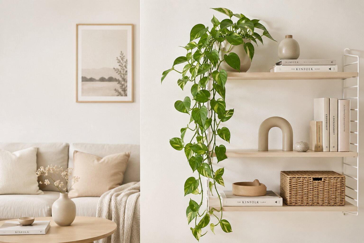 Com estes cuidados, uma jiboia numa prateleira alta aguenta anos sem precisar de grande intervenção. Vai crescendo, as hastes vão caindo, e o resultado é um dos efeitos decorativos mais eficazes que podes ter em casa com muito pouco trabalho.