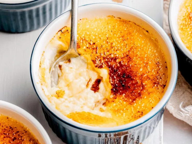 - Antes de servir, polvilhe o leite creme com açúcar e queime-o com um ferro em brasa ou com um maçarico de cozinha. Faça movimentos circulares para criar uma camada uniforme e dourada.