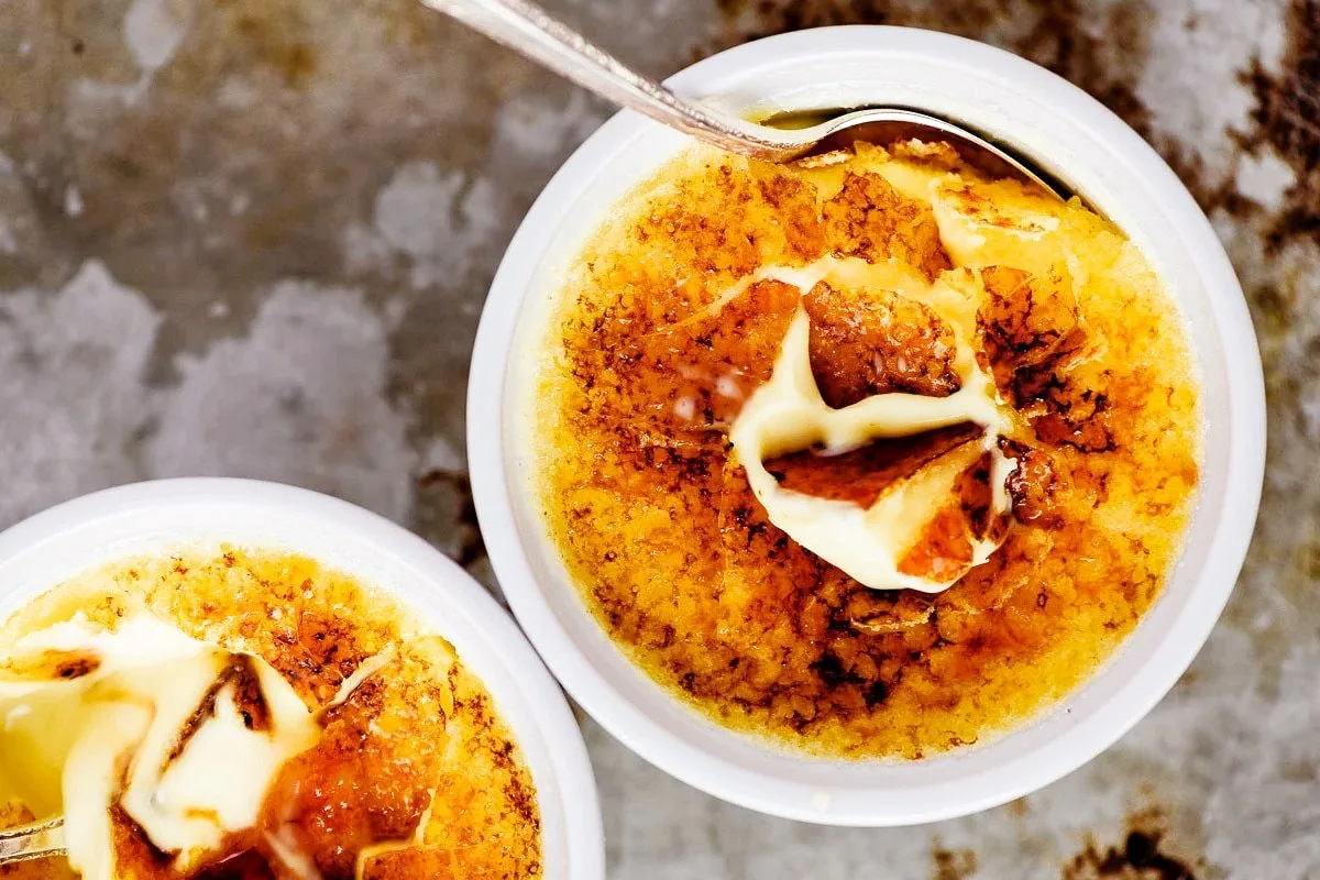 - Na hora de servir, polvilhe o leite creme com açúcar e queime-o com um ferro em brasa ou com um maçarico de cozinha, até formar uma crosta dourada e crocante.
