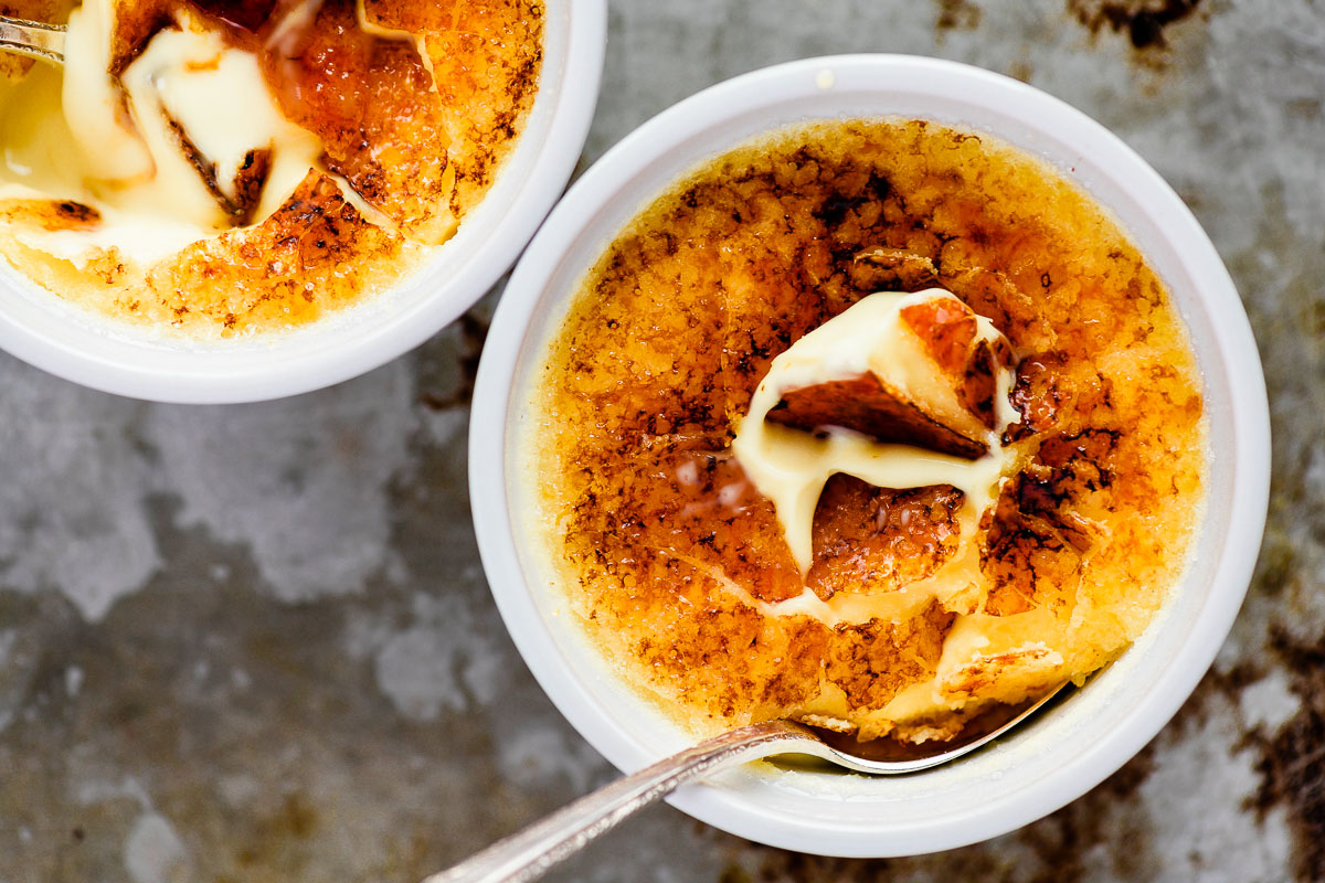 O açúcar só deve ser queimado no momento de servir. Se for feito com antecedência, a humidade do creme acaba por dissolver o caramelo, deixando a superfície húmida.