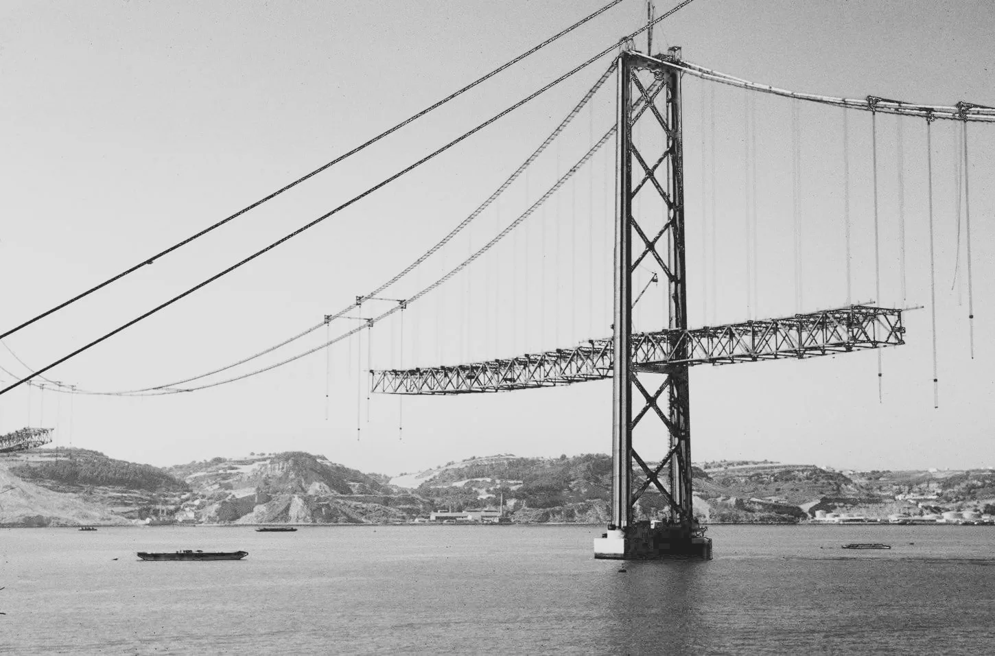 Veja imagens da construção e dos primeiros dias de vida da Ponte 25 de Abril, que estão disponíveis no Arquivo Municipal de Lisboa e da Biblioteca de Arte da Fundação Calouste Gulbenkian.