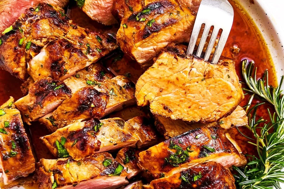 - Corte o lombo de porco em fatias e sirva com o molho.