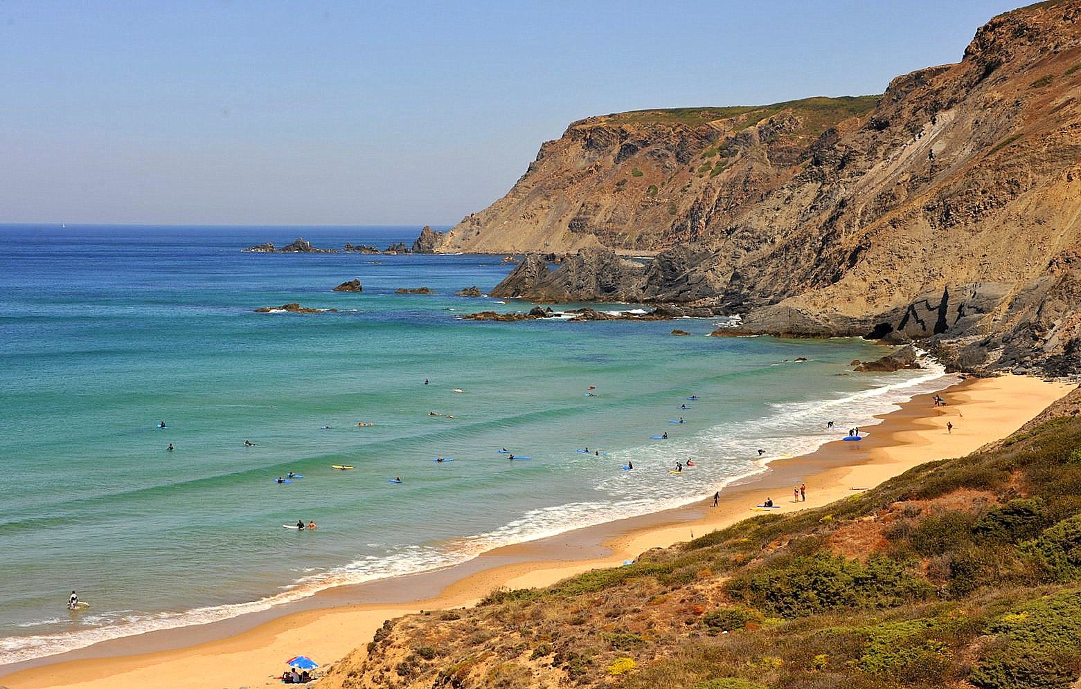 Esta é uma praia ampla, com um extenso areal que se perde de vista. Ao longo da praia, muito visitada por surfistas, encontramos sempre um recanto com a dose de tranquilidade de que precisamos. A partir do areal, temos uma vista incrível sobre a envolvente de penhascos altos que dão lugar a uma colina, autêntico miradouro natural.